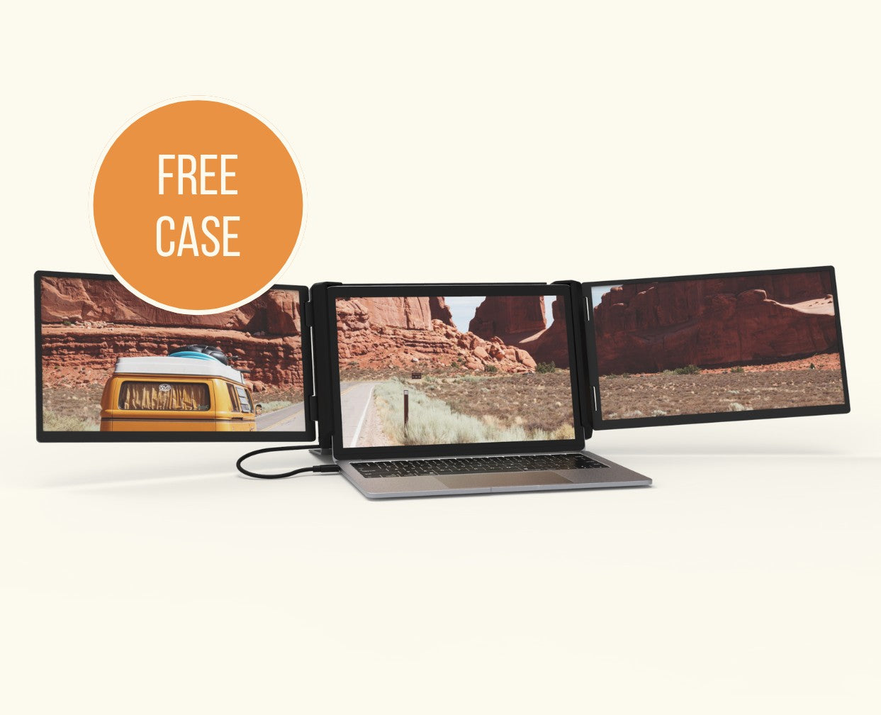 Add two additional 13.3" screens to your laptop with just one cable! Reimagine the way you work on the go, with the Tri-Screen 3. Free custom travel case included.
