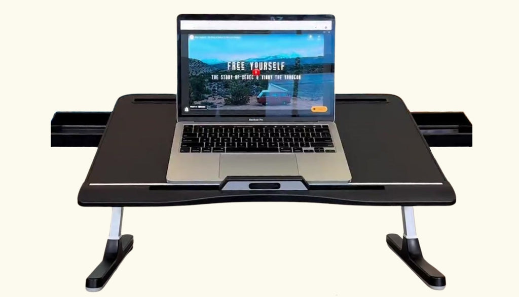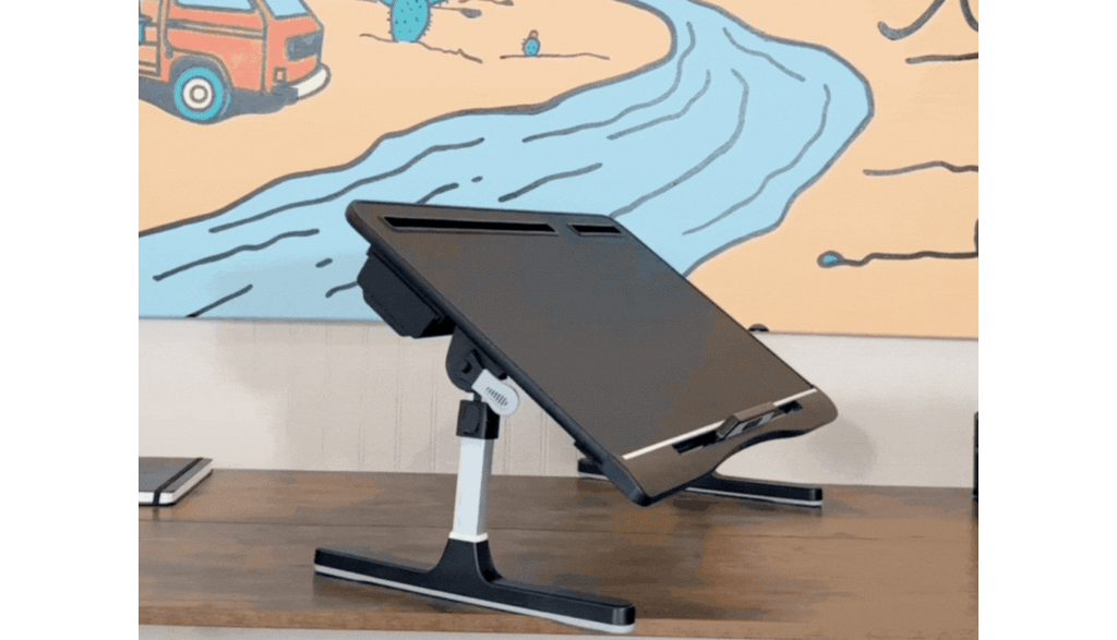 Work comfortably from anywhere. Standing, sitting at your desk, or on the couch.