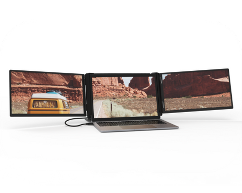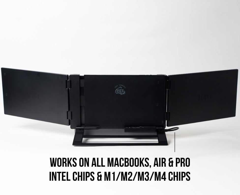 The Xebec Tri-Screen 3 Mac Adapter is required for all Mac users. It connects directly to the frame of the Tri-Screen 3 and screws in so it seamlessly becomes part of the unit overall, no need to remove and attach each time. The single cable solution still applies, even utilizing the same embedded cable management system to keep it all in place.