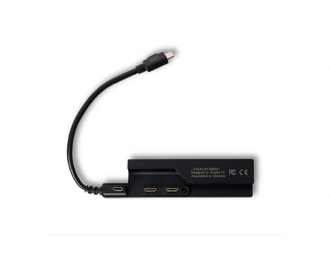 Connect with a single, embedded USB-C cable. One cable for two extra screens, that’s it. Mac laptops require the single cable Xebec Tri-Screen 3 Mac Adapter, more details below.